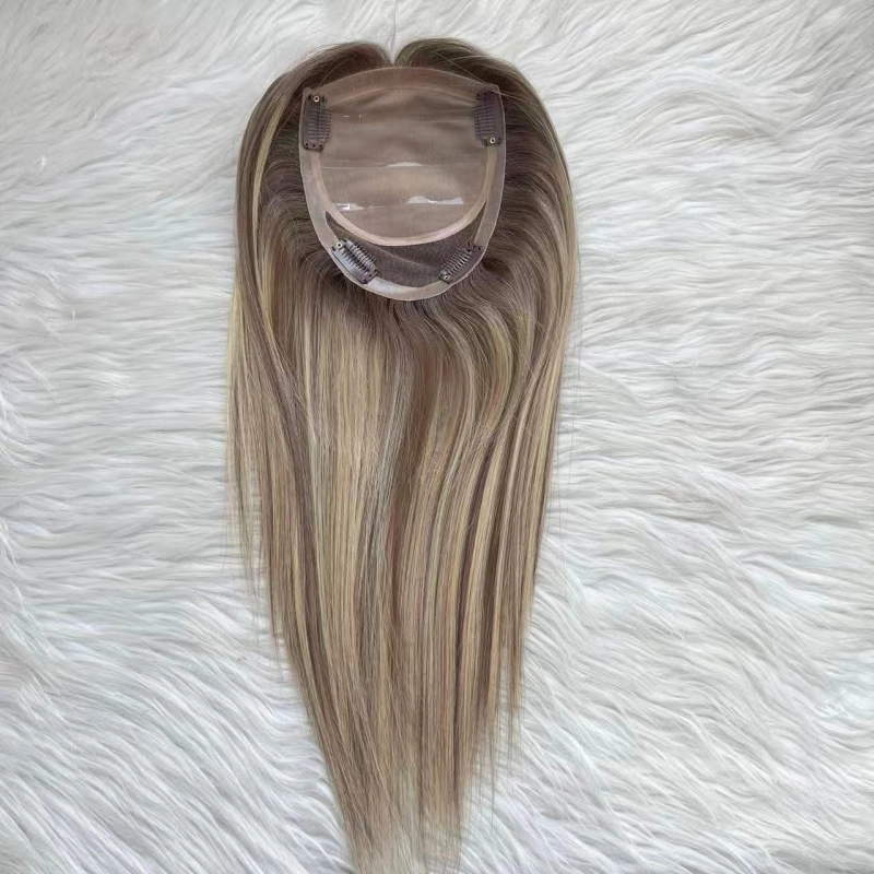 Picture shown A human hair topper is a lightweight hairpiece designed to add natural-looking coverage and volume to thinning areas on the top of the head.