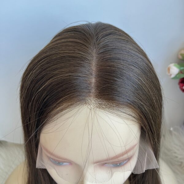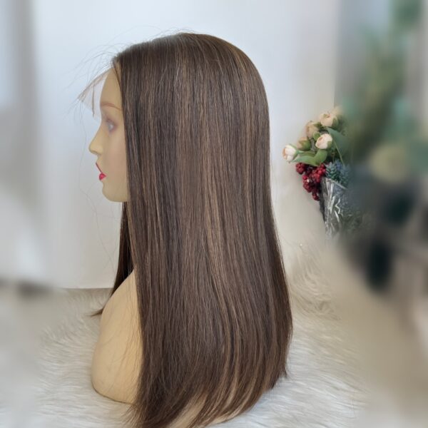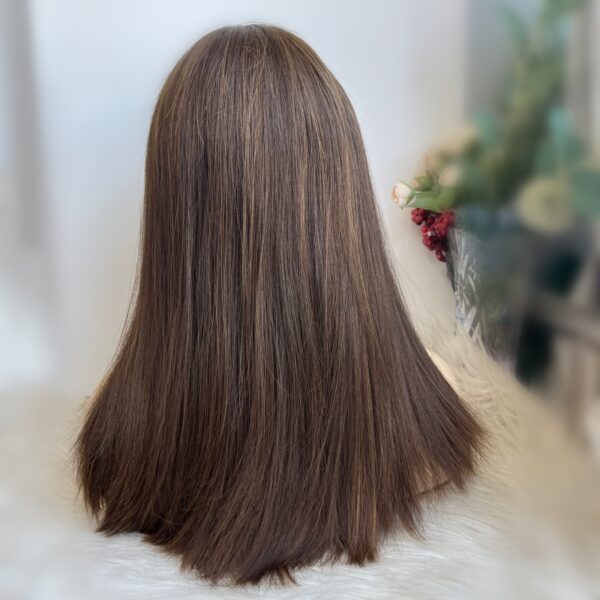 • Natural Color Blend: The #4/8 color blend of the wig features a rich medium to dark brown shade with subtle highlights. This natural color variation enhances the wig’s realism, closely resembling naturally brunette hair. The color blend is designed to complement a variety of skin tones, providing a flattering and natural appearance. Whether worn for everyday use or special occasions, the wig’s color enhances overall facial features and complements different makeup styles.