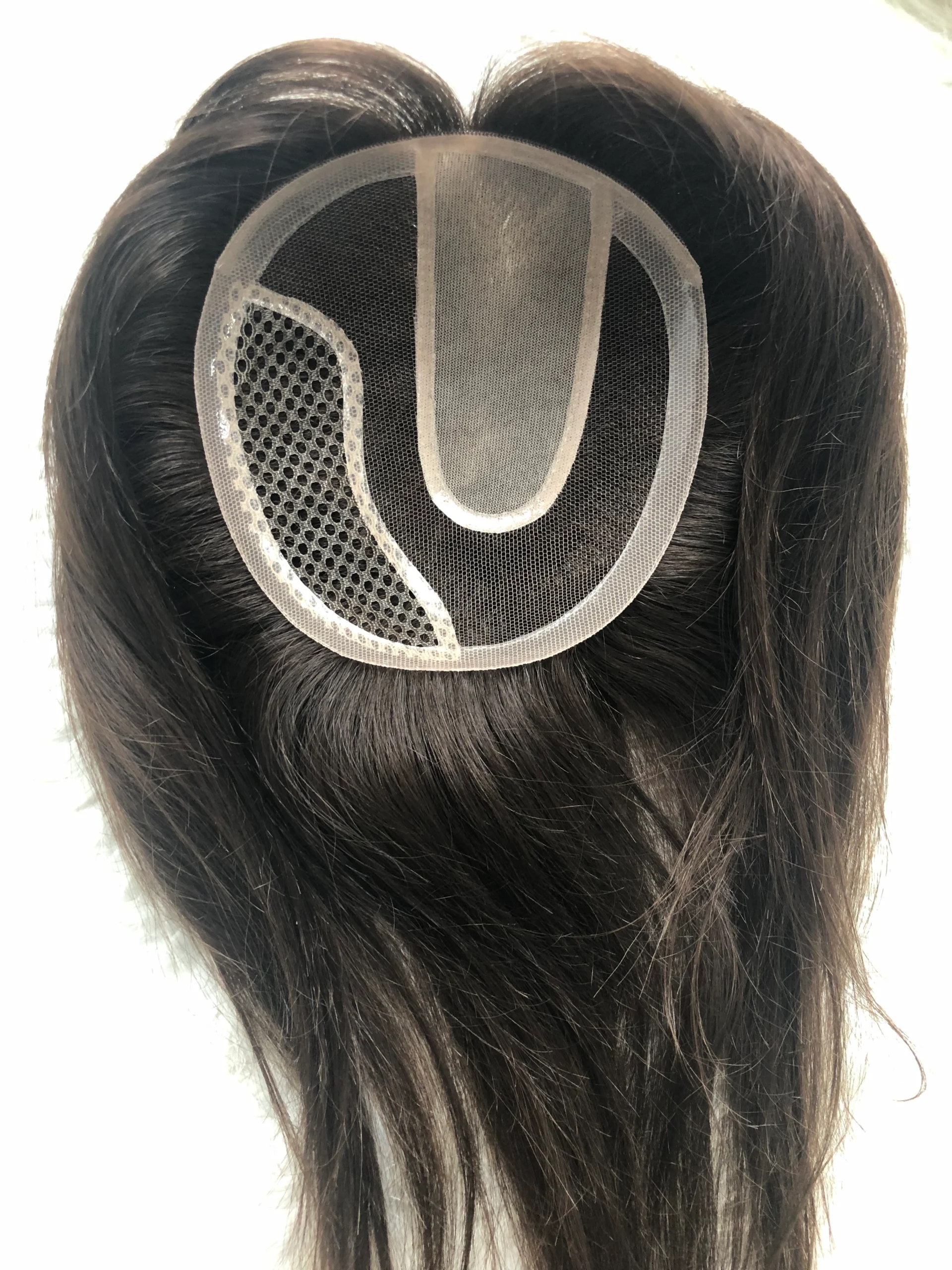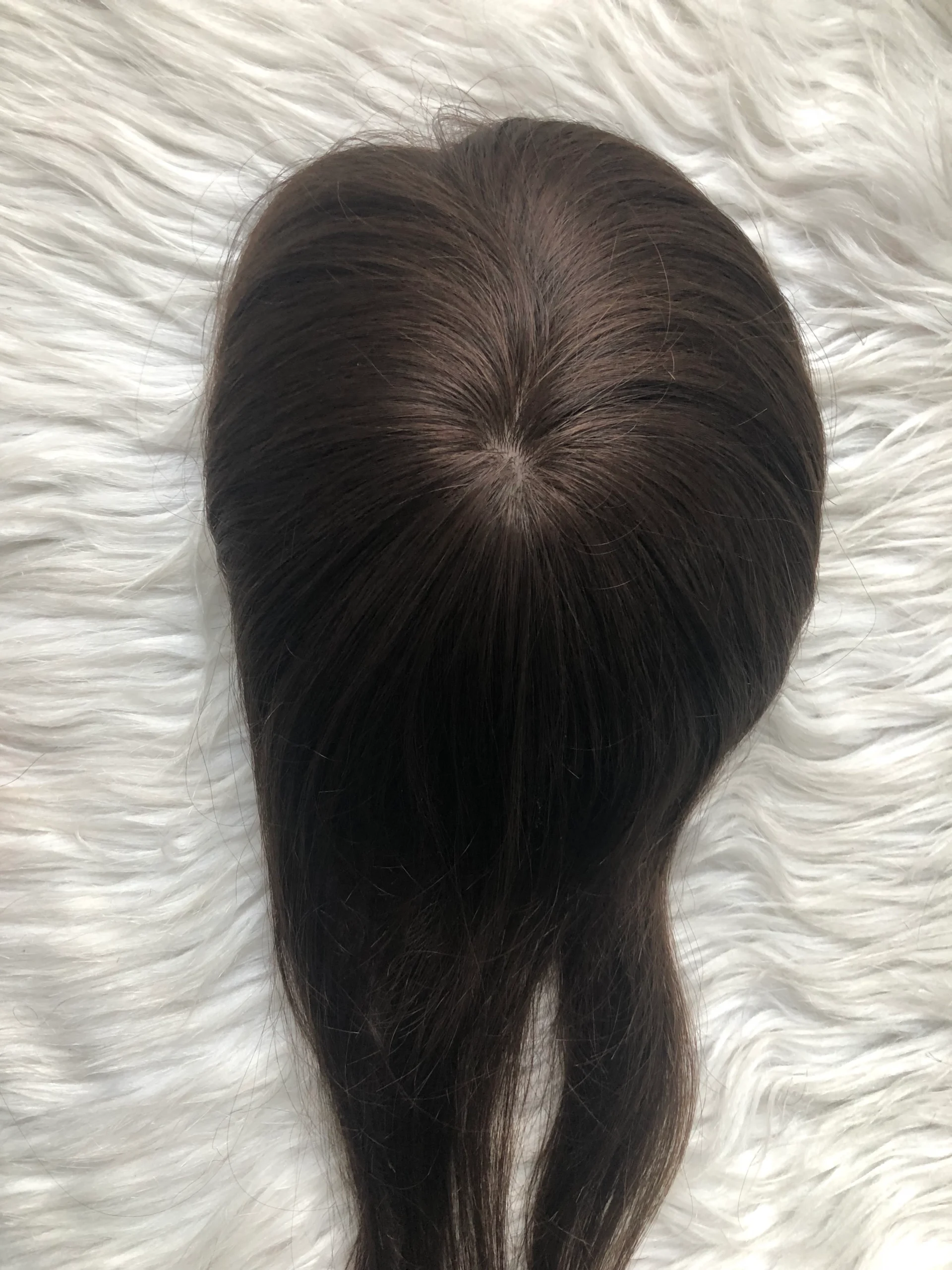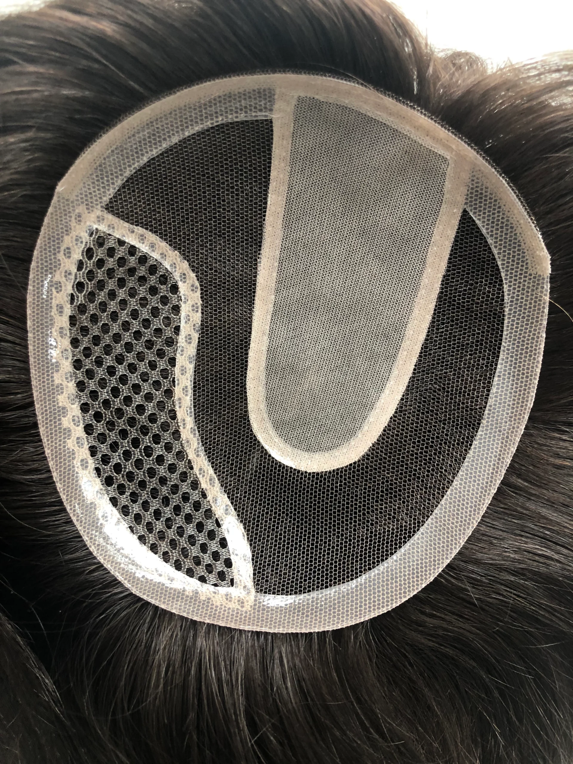 This picture shows the base of mono with weft topper.The topper measuring 6*7 inches, are clearly displayed.